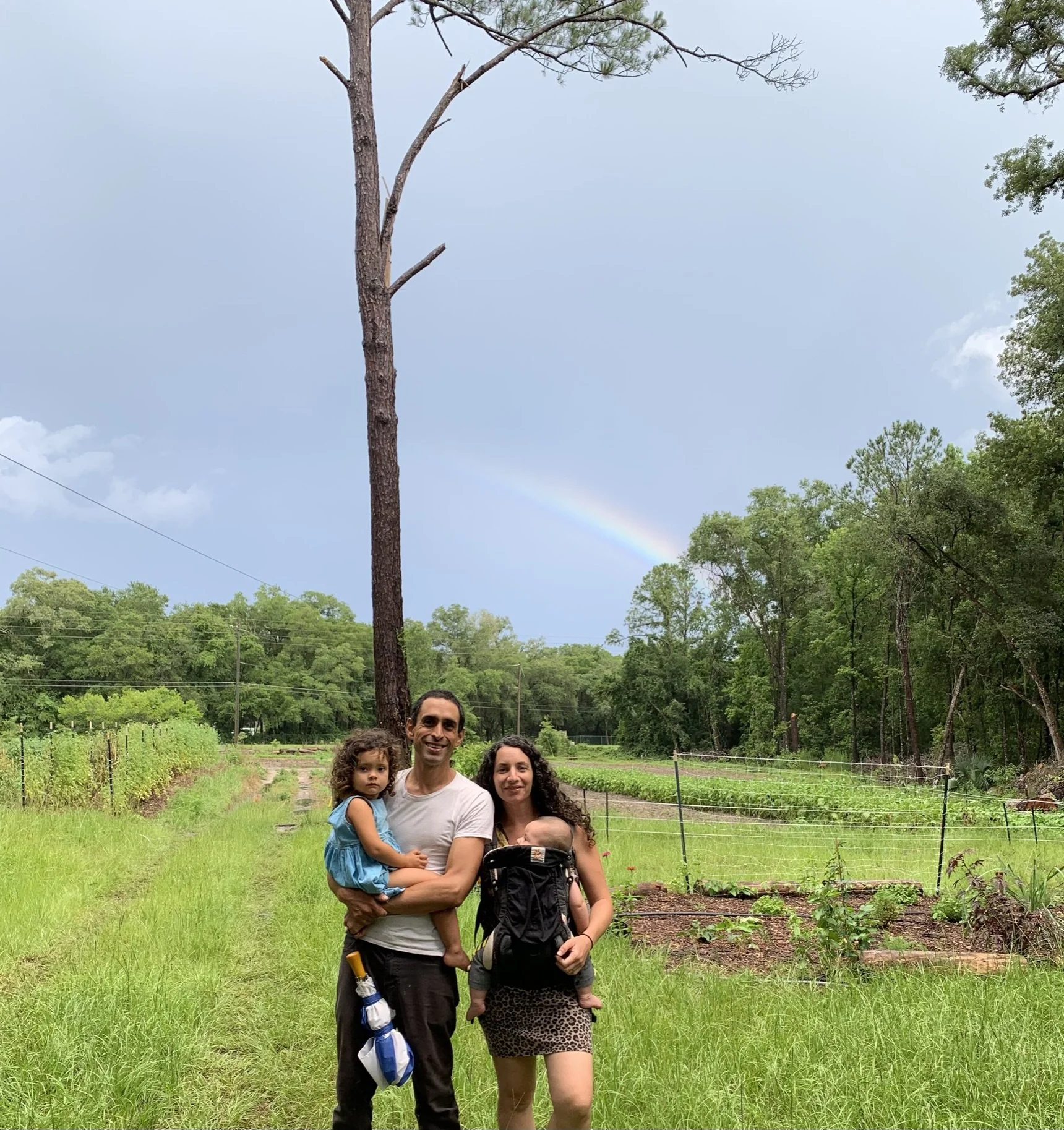 Nicoya Farm is a family fruit and vegetable farm, managed by Aviva Asher and Daniel Robleto on 2.5 acres of land in Southeast Gainesville. They work to build healthy soil and use intensive, regenerative farming practices to grow nutritious crops on their small market farm. They each began their farming journey in the early 2000’s and have extensive experience on urban and rural farms throughout the US and in Nicaragua. In 2015 they joined forces to begin Nicoya Farm on leased land in South Florida and in 2020 they transitioned the farm to collectively owned land in SE Gainesville.